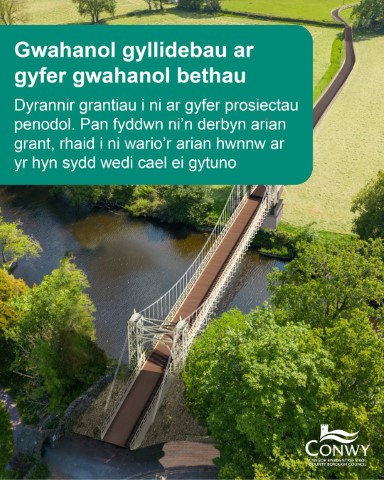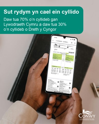 Oeddech chi’n gwybod? Mae tua 70% o’n cyllideb yn dod gan Lywodraeth Cymru, a dim ond 30% sy’n dod o Dreth y Cyngor. Byddwn yn aml yn clywed y myth bod Treth y Cyngor yn talu am bopeth a wnawn, ond nid yw hynny’n wir. Mae’r rhan fwyaf o’n cyllid yn dod gan Lywodraeth Cymru i’n helpu i ddarparu gwasanaethau hanfodol ar draws Conwy.