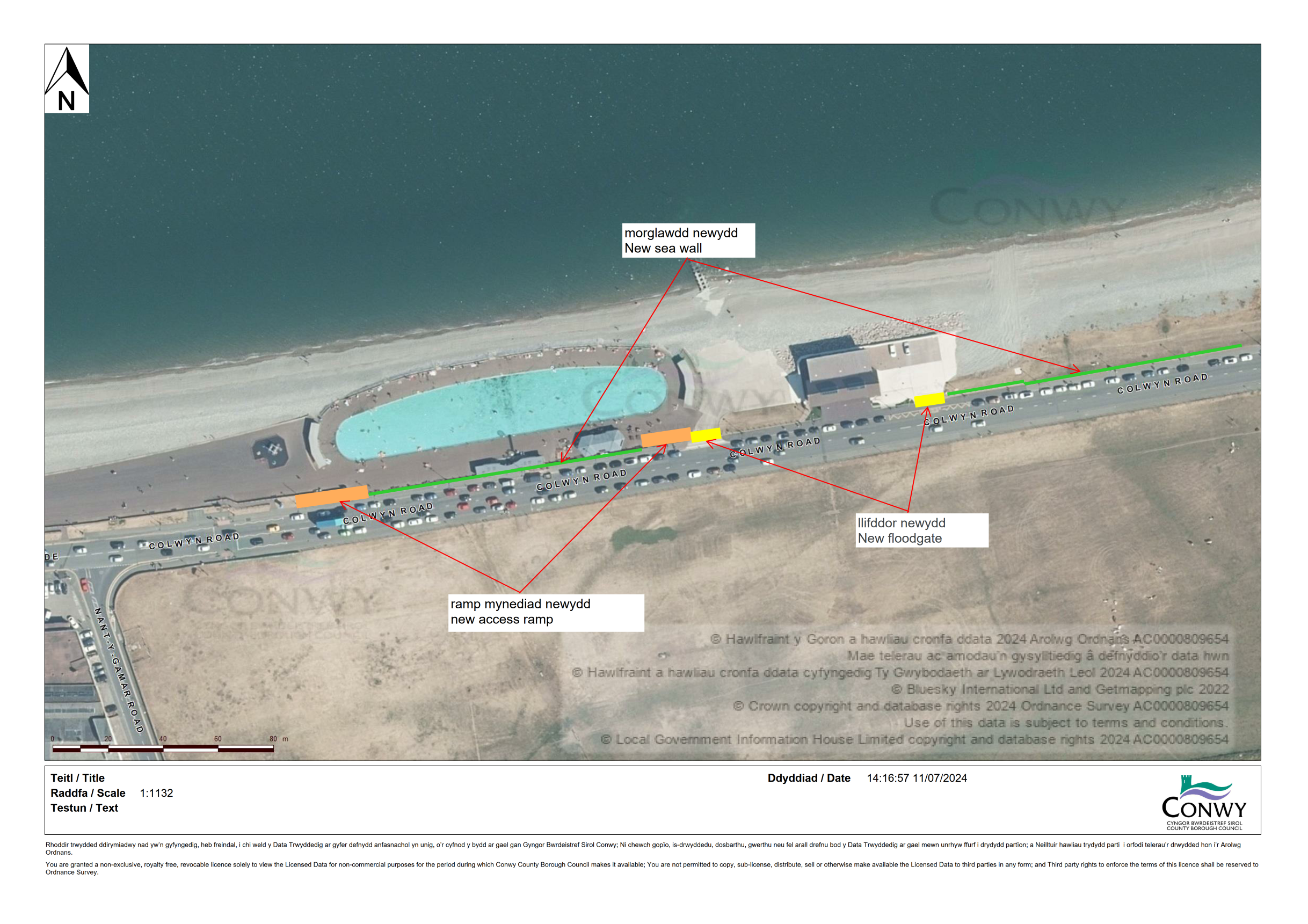 Yn ogystal â’r gwaith newydd hwn, byddwn yn gwneud atgyweiriadau i’r wal bresennol ar hyd Traeth y Gogledd er mwyn atgyweirio diffygion. Bydd y gwaith i’r tair wal bresennol ym Mhenmorfa hefyd yn atgyweirio’r diffygion presennol megis craciau a cherrig copa rhydd.
